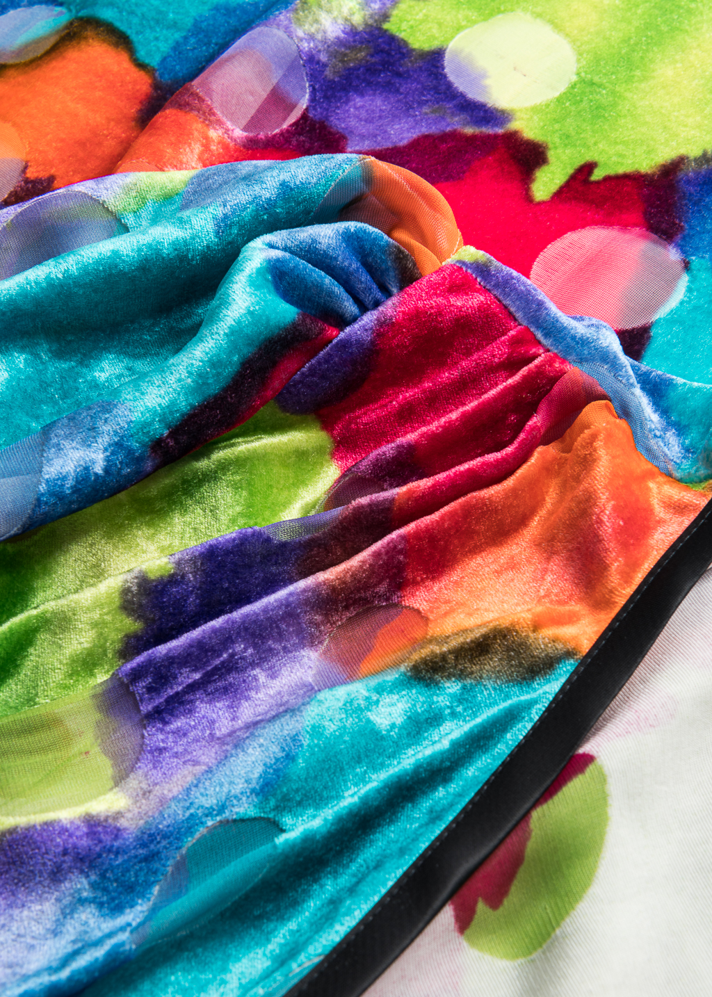 Multikolor, aksamitna sukienka wykonana z naturalnego jedwabiu i wiskozy.